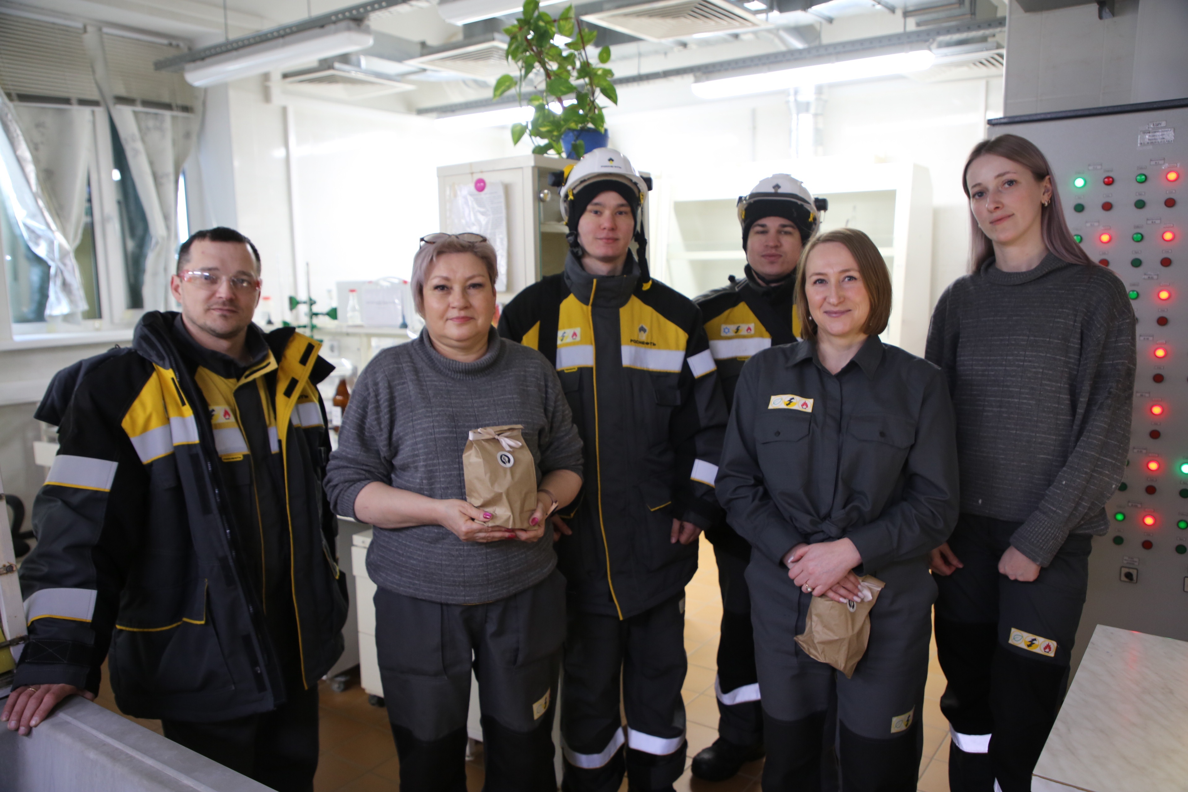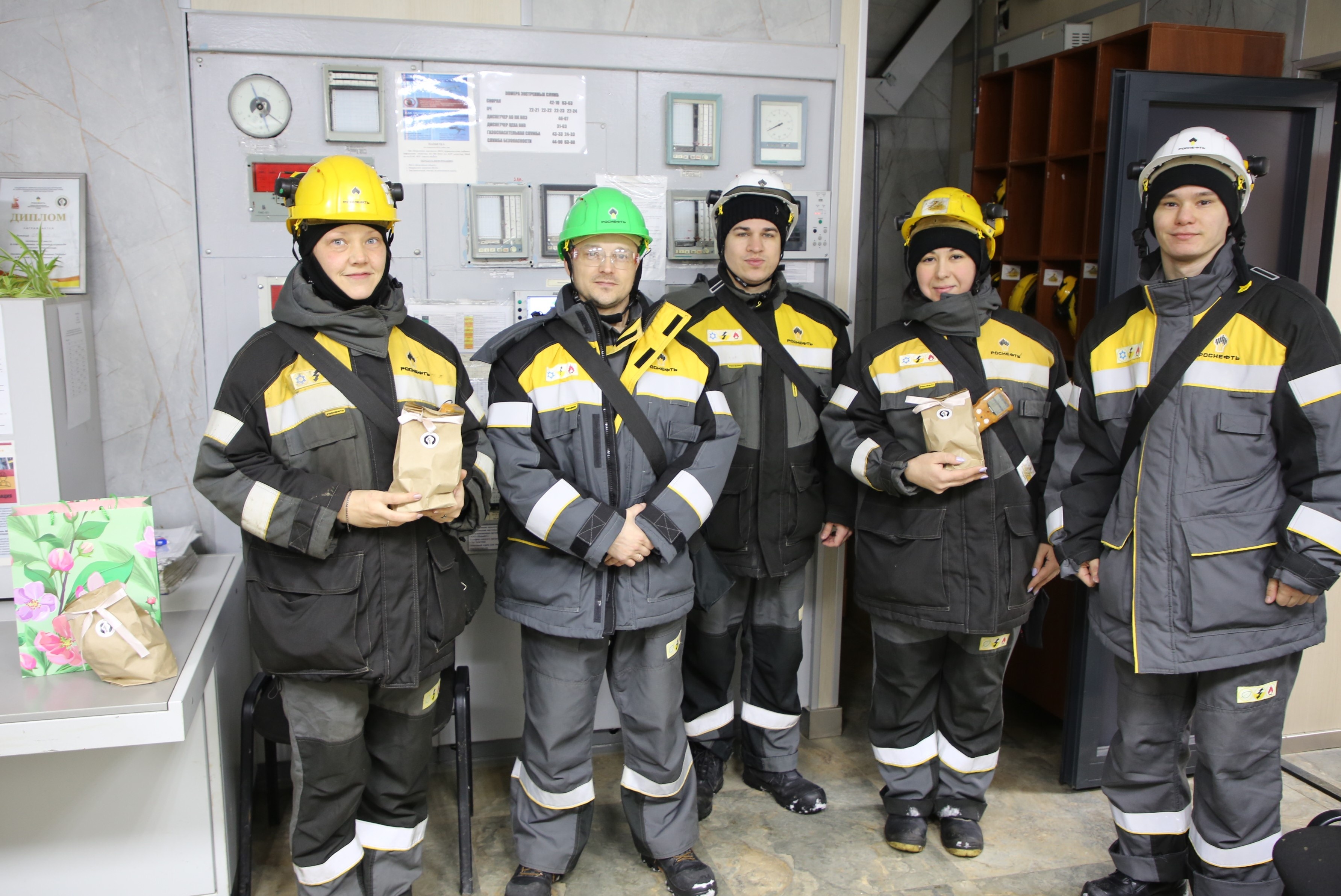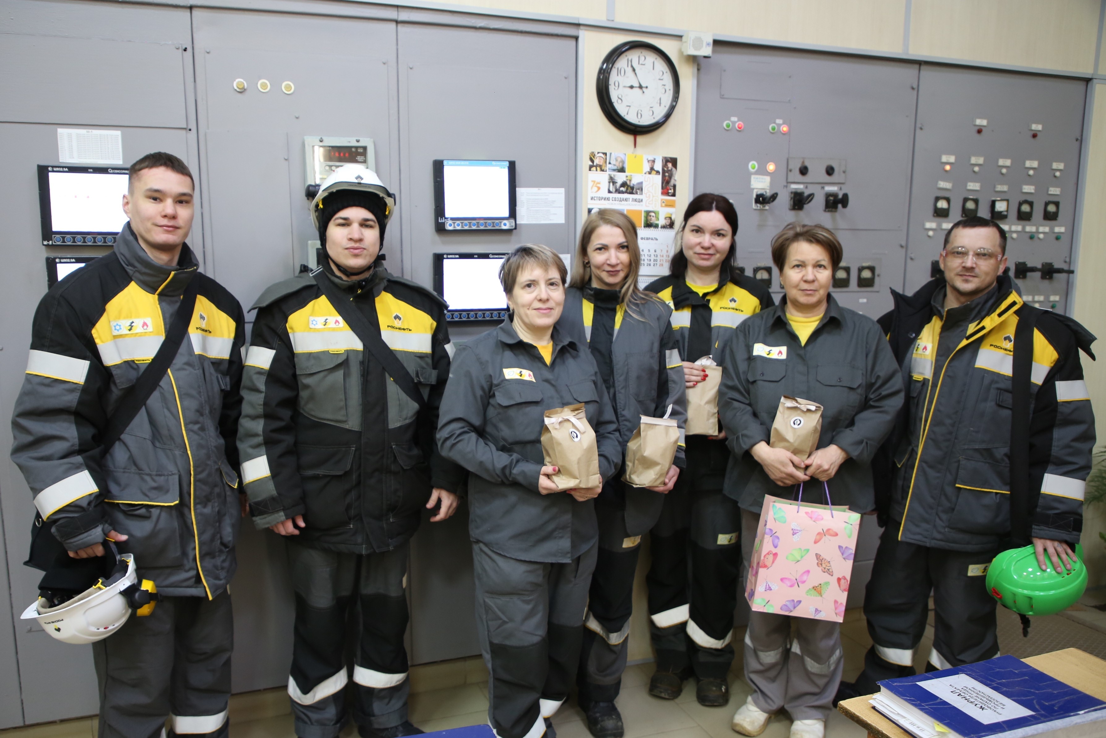 С самого утра представители сильной половины колесили по цехам с десертными наборами. Каждую сотрудницу, встречавшую праздник на посту, ждал сюрприз, теплые слова и искренние улыбки коллег.