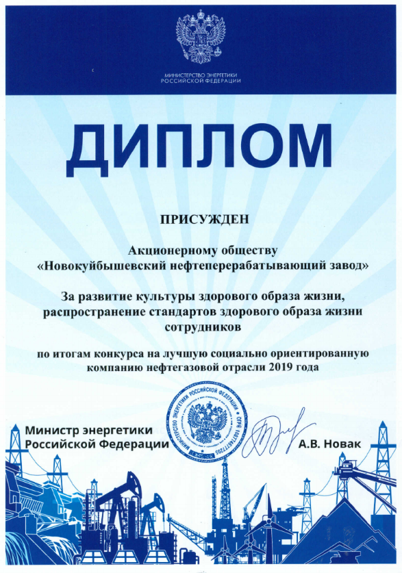 Благодаря четкому социальному партнерству и слаженной работы профсоюзной организации Новокуйбышевский нефтеперерабатывающий завод стал победителем в номинации «Развитие культуры здорового образа жизни, распространение стандартов здорового образа жизни сотрудников». Также наша компания стала лауреатом в номинации «Социальное партнёрство на корпоративном уровне».