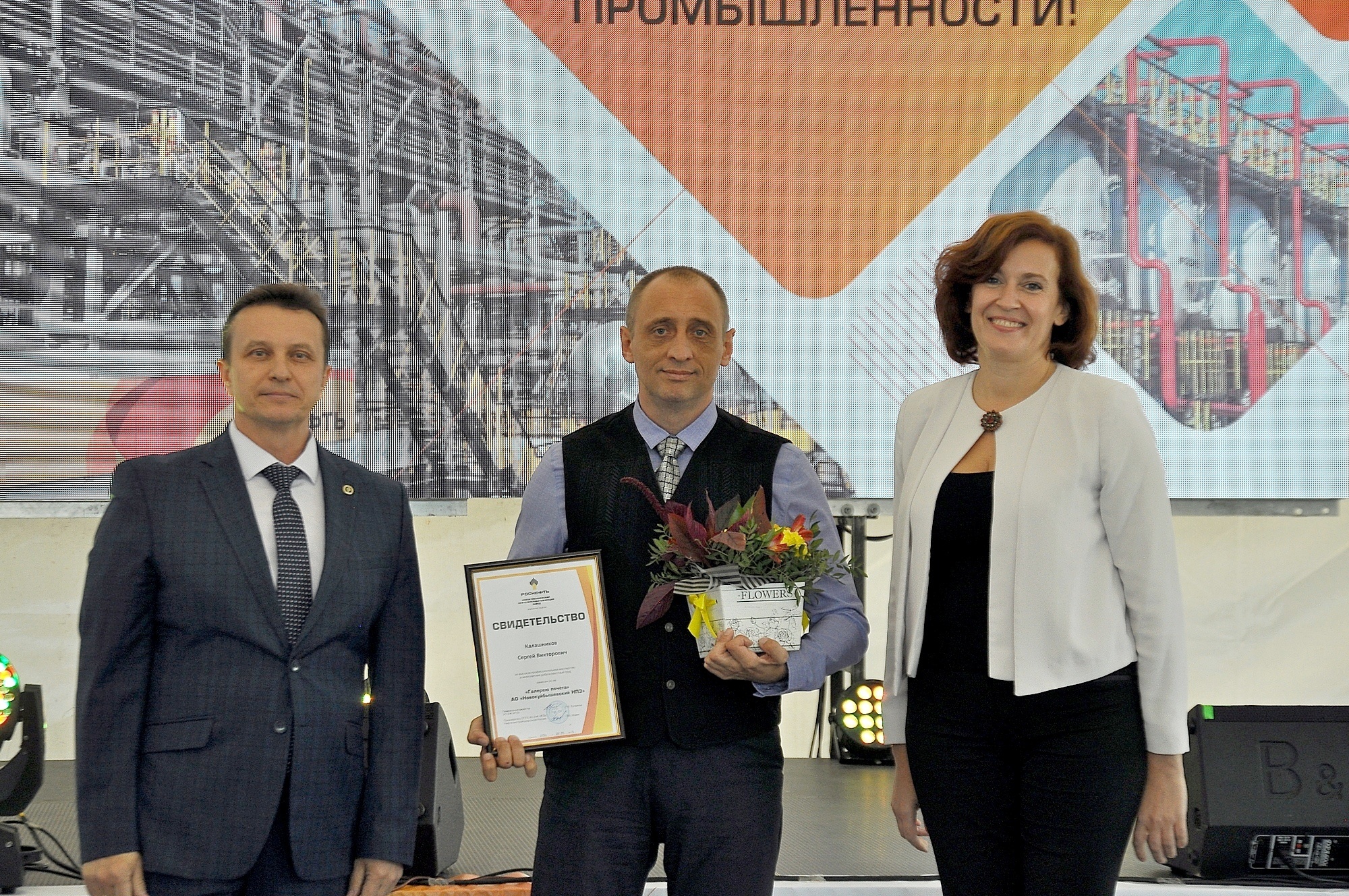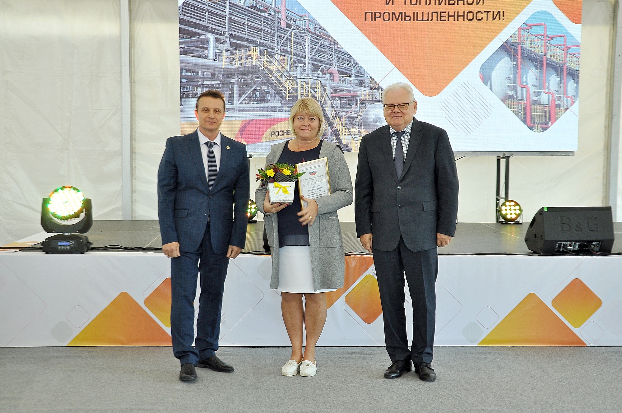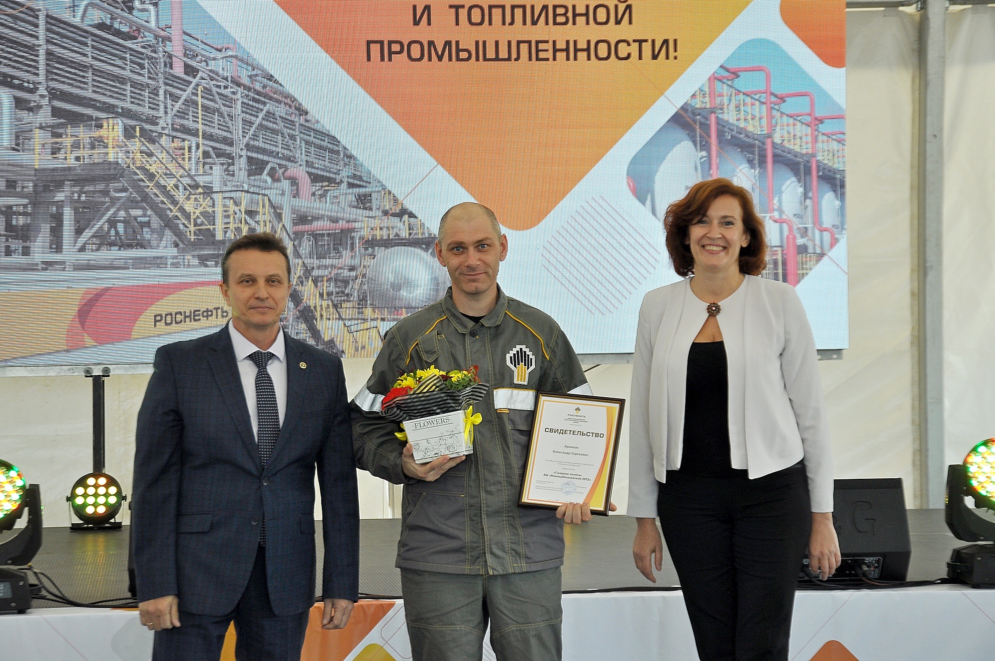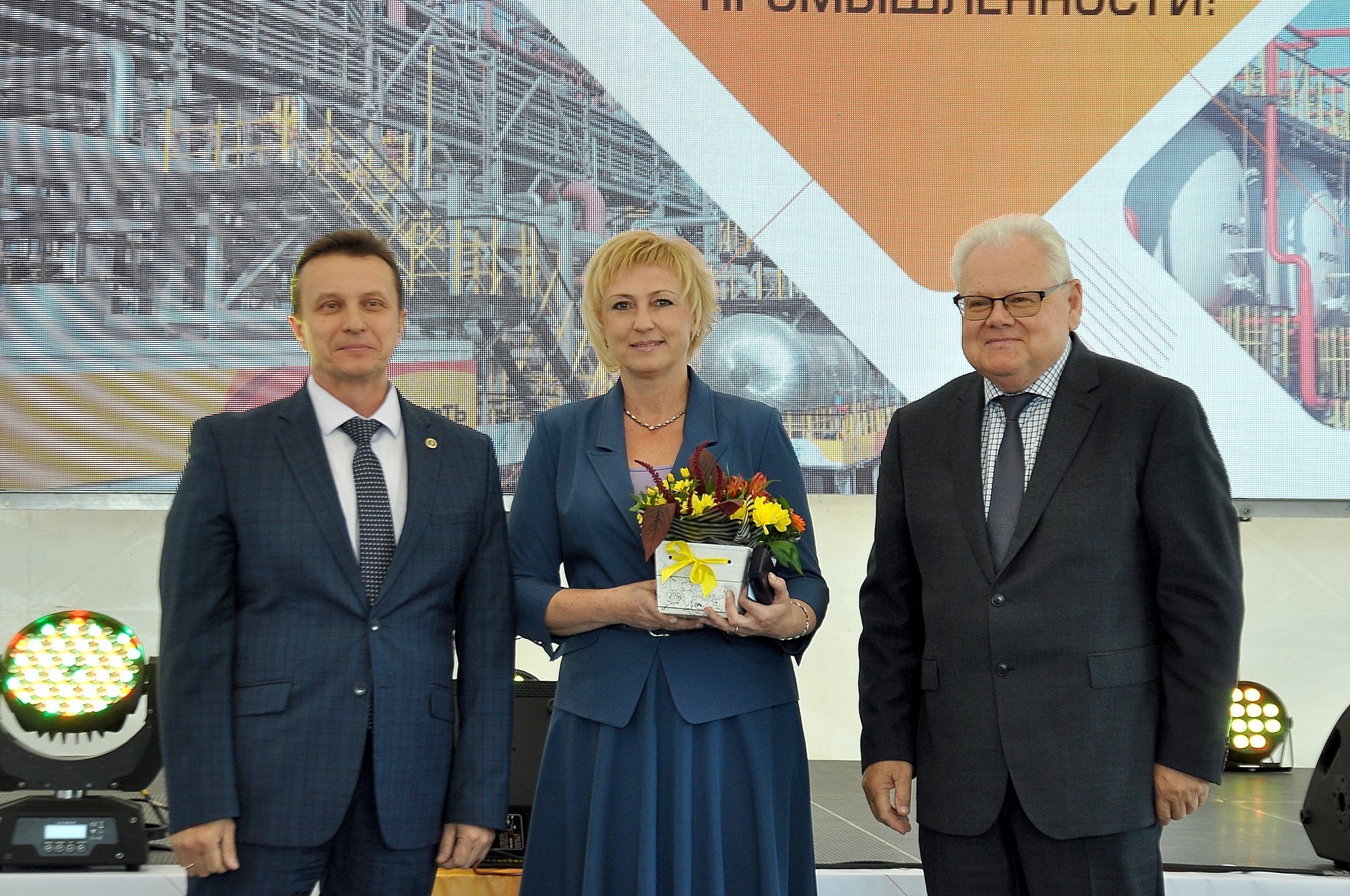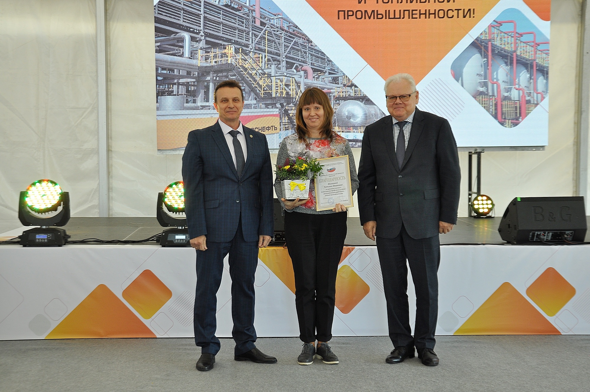 В рамках праздника в этом году 109 заводчан были отмечены наградами различного уровня. Министр вручил высокие награды лучшим сотрудникам, особенно приятно, что их обладателями стали в том числе и женщины: звания «Почётный нефтехимик» были удостоены Елена Беляева – старший диспетчер производственного управления и Ольга Морозова – экономист цеха №3. Нагрудным знаком и званием «Почётный нефтяник» был отмечен Николай Мачалкин – старший оператор установки 24-6/3.