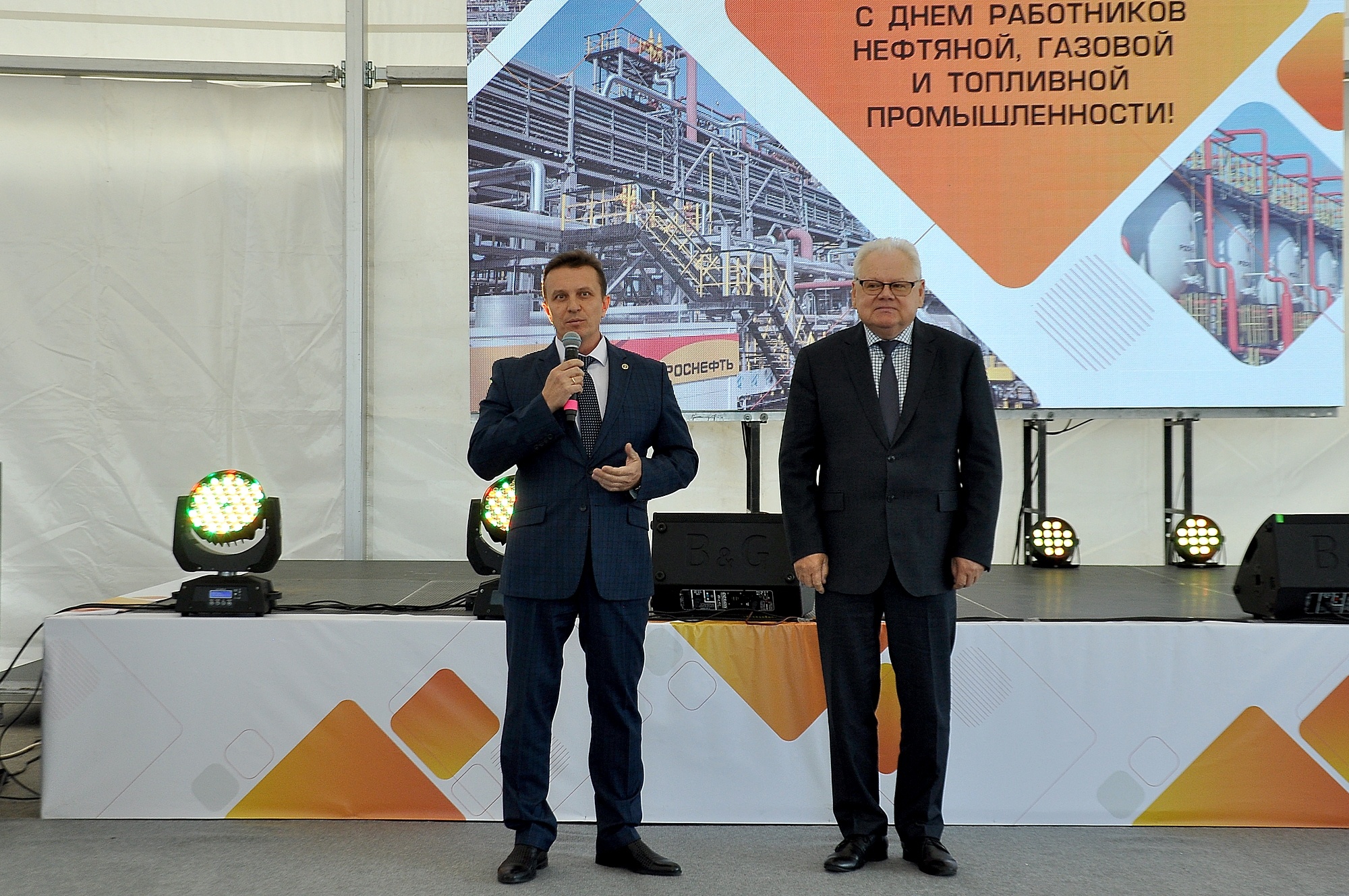 5 сентября поздравить коллектив НК НПЗ приехал министр промышленности и торговли Самарской области Михаил Жданов, который выразил благодарность заводчанам за колоссальный ежедневный труд и отметил, что успех предприятия зависит от вклада каждого сотрудника, независимо от того, работает ли он на установке или в офисе.