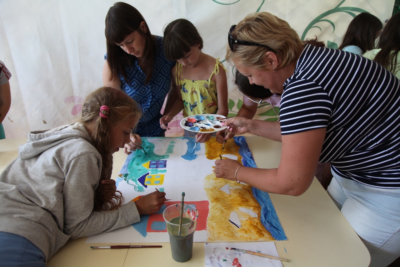 После обеда работала творческая мастерская, по итогам работы которой отдыхающие создали общую картину под названием «50 оттенков лета на «Утесе».